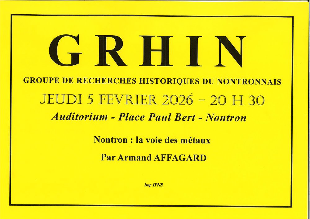 NONTRON : Conférence du GRHIN (Groupe de Recherches Historiques du Nontronnais), le jeudi 05 février 2026 à l'auditorium place Paul Bert. . Nontron : la voie des métaux par Armand Affagard.