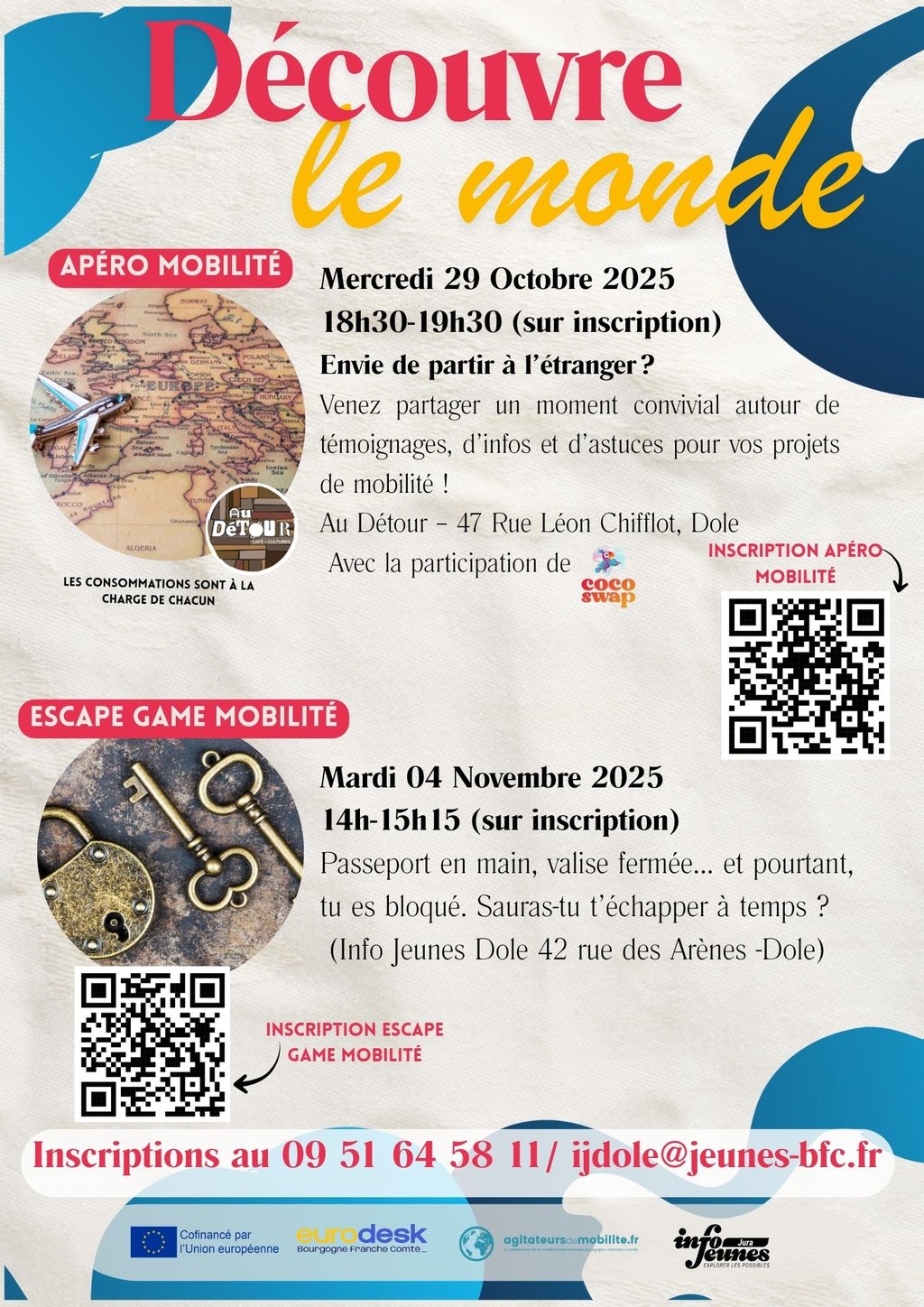 Dans le cadre de la campagne européenne Time to Move, L'association Info Jeunes Jura propose deux rendez-vous inédits à Dole pour permettre aux jeunes de découvrir les nombreuses possibilités de départ à l’étranger, que ce soit pour étudier, travailler, faire du bénévolat ou tout simplement vivre une expérience unique !