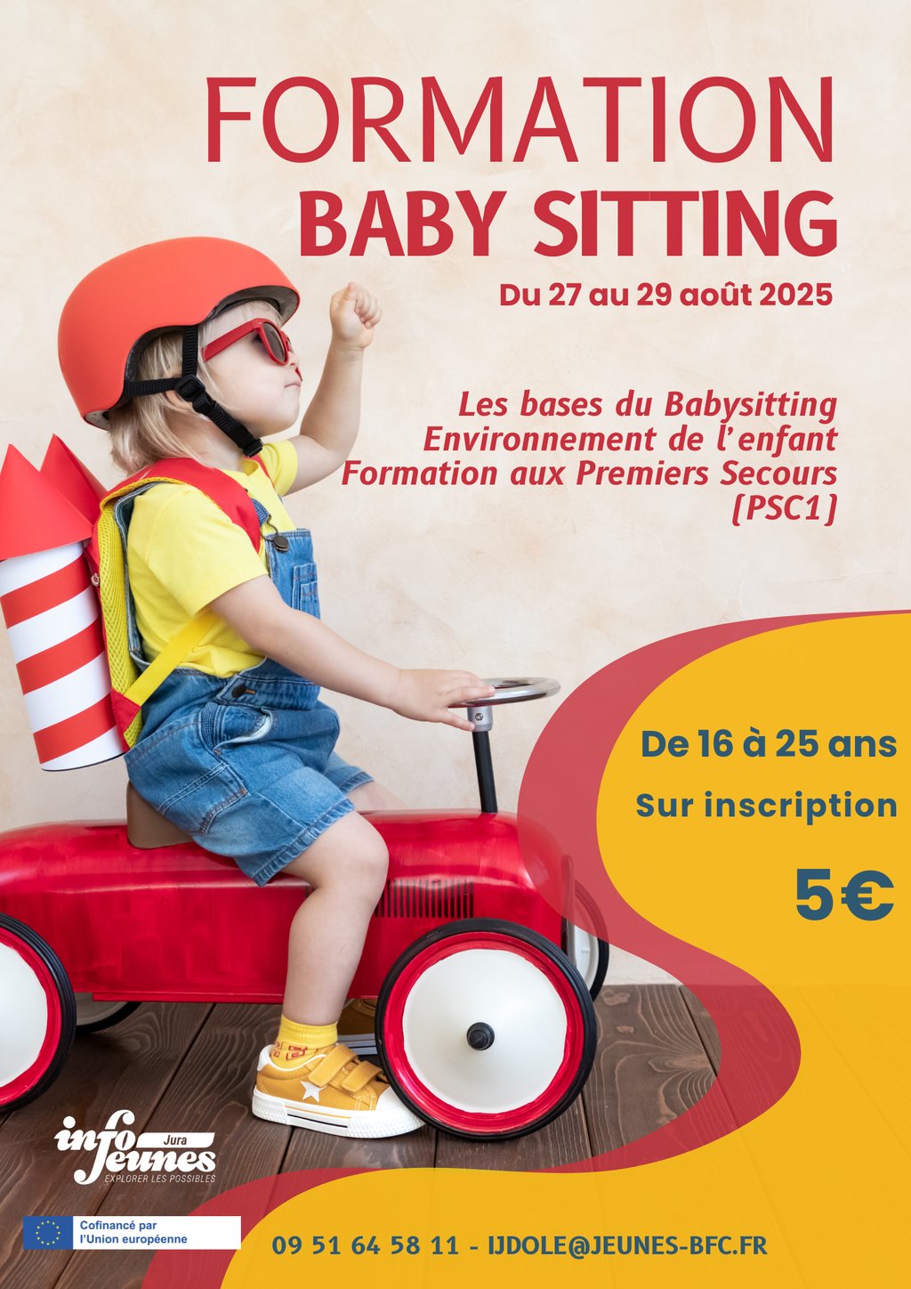 Info Jeunes Dole organise une formation baby-sitting du 27 au 29 août 2025, accessible à tous les jeunes dès 16 ans, quel que soit leur parcours.