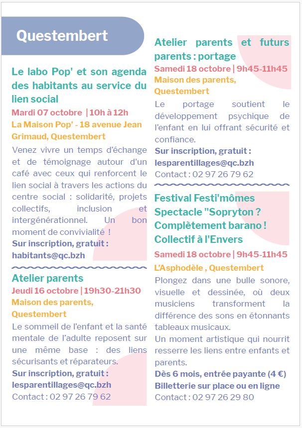 Du 04 au 25 octobre, une vingtaine d’actions se dérouleront sur le territoire Est Morbihan. Le territoire recouvre les communautés de communes d’Arc Sud Bretagne, De l’Oust à Brocéliande Communauté, de Questembert Communauté et de Ploërmel Communauté ainsi que les communes de Camoël, Férel et Pénestin.