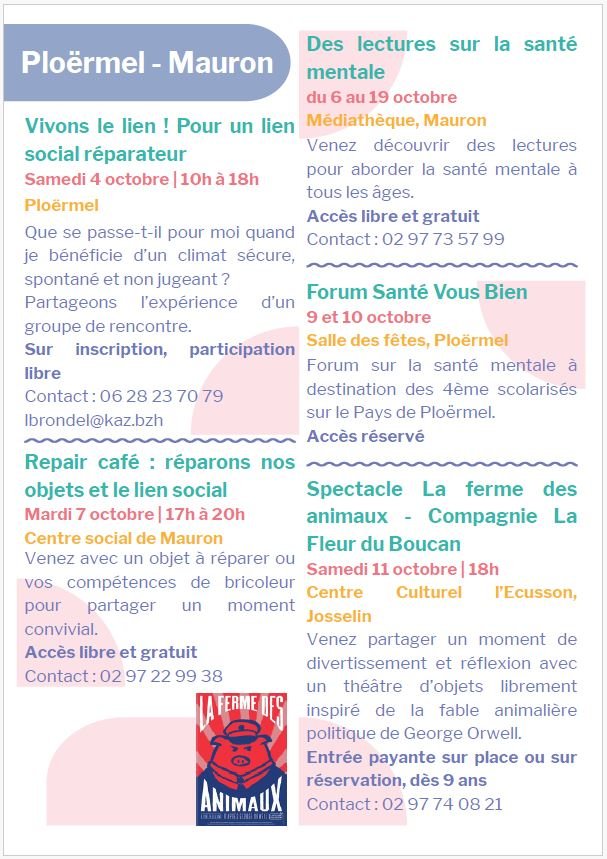 Le Contrat Local de Santé Est Morbihan organise une programmation locale des semaines d'information sur la santé mentale.