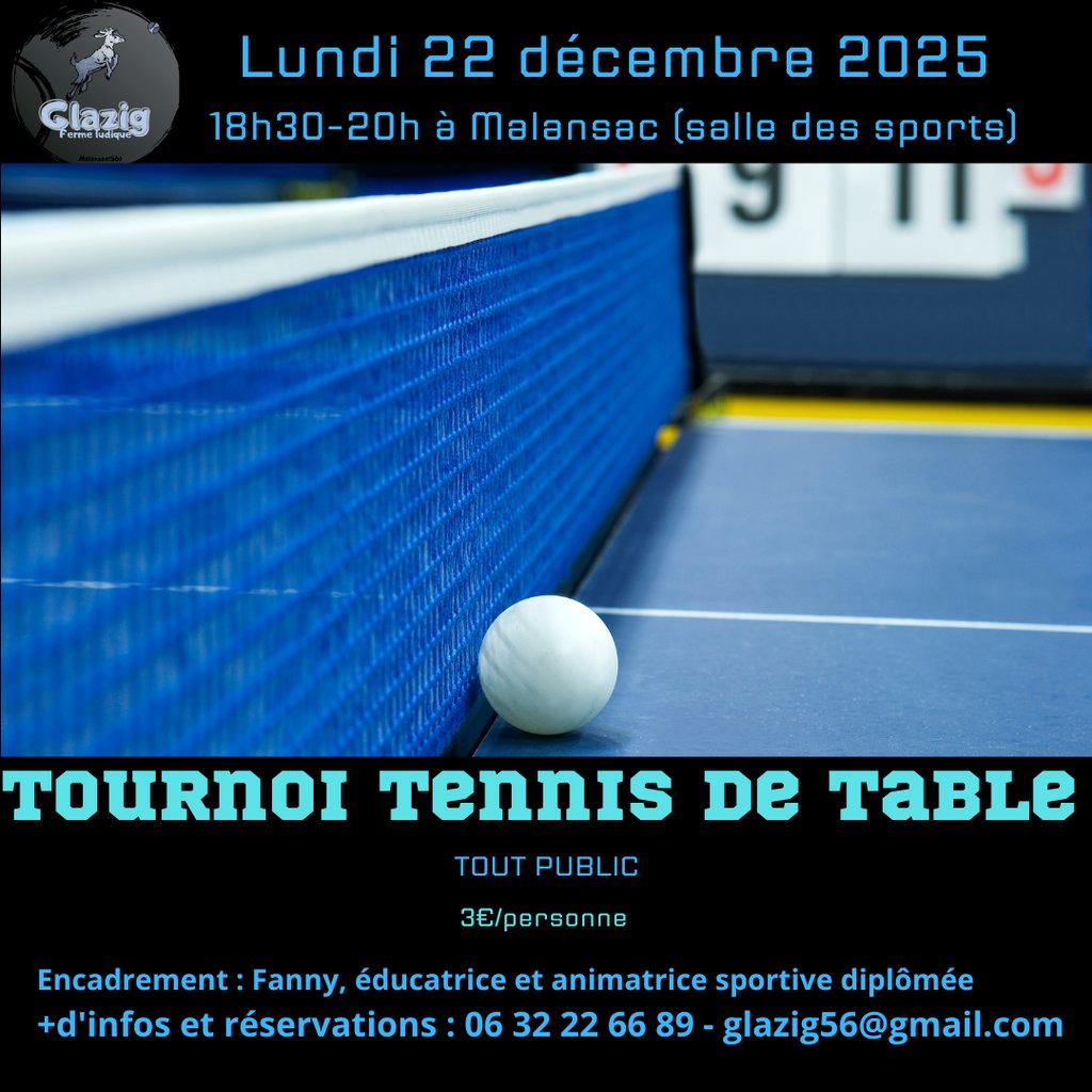 Tournois de tennis de table ouvert à tous ! Niveau loisirs familial. Médailles pour tous les participants. Amenez vos raquettes!