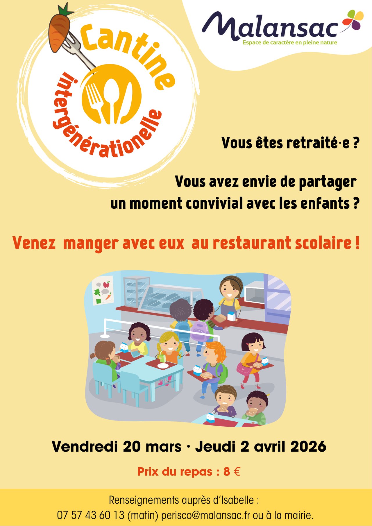 Renseignements et inscriptions auprès d'Isabelle (perisco@malansac.fr) ou en mairie.