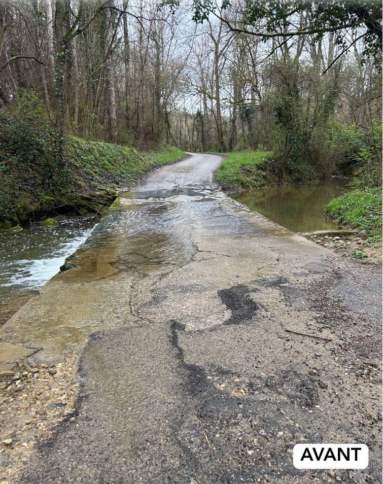 Ces désordres rendaient la traversée de plus en plus dangereuse. La réhabilitation était donc indispensable pour sécuriser l’accès au hameau de Mazeroles.