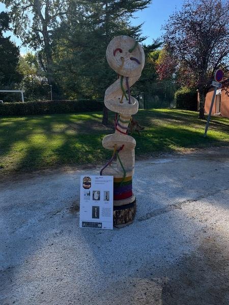 Réalisée dans le cadre du Symposium International de Sculpture de Campagn'art, cette oeuvre s'invite au coeur du village pour rendre l'art contemporain accessible à tous.