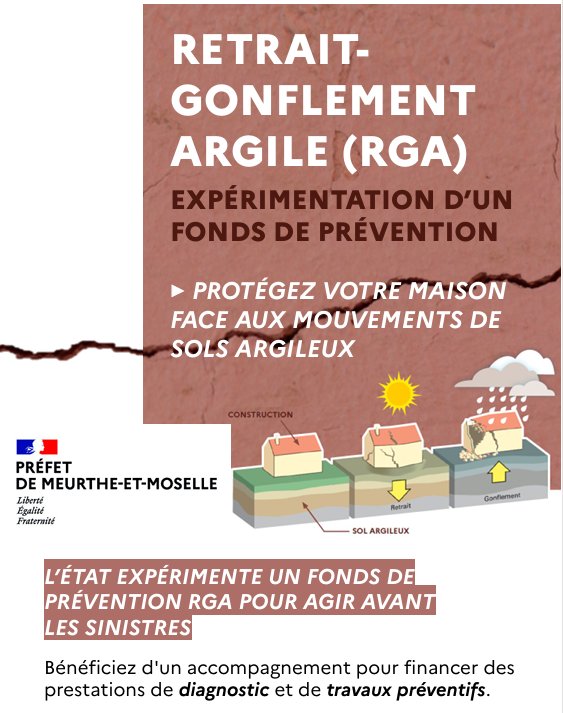 Dans ce contexte, l’État a retenu 11 départements – dont la Meurthe-et-Moselle – pour décliner un dispositif expérimental visant à prévenir l’apparition de désordres structurels liés au Retrait Gonflement d’Argile (RGA).