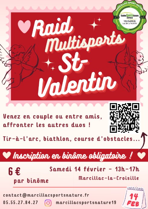 Raid multisports pour la Saint Valentin, le samedi 14 février de 13h à 17h à Marcillac Sports Nature