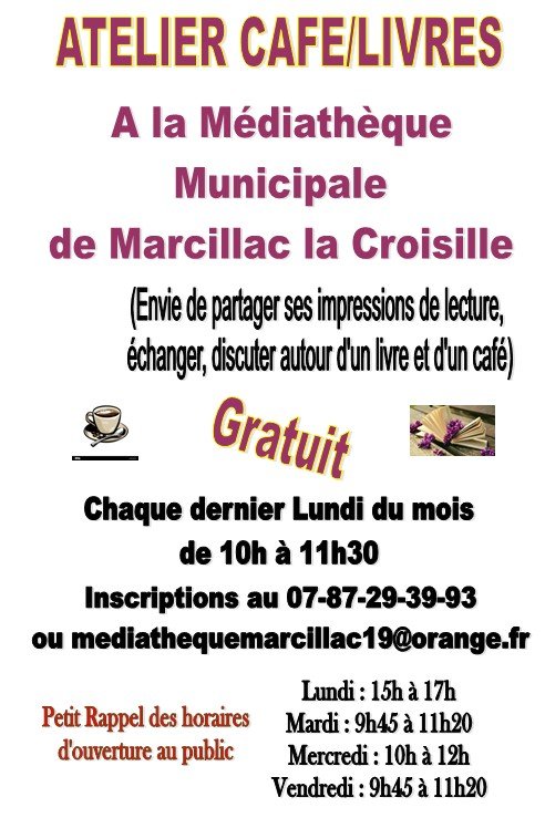 Un atelier Café Livre vous est proposé chaque dernier lundi du mois. Cet atelier permet de discuter autour d'un livre et d'un café.