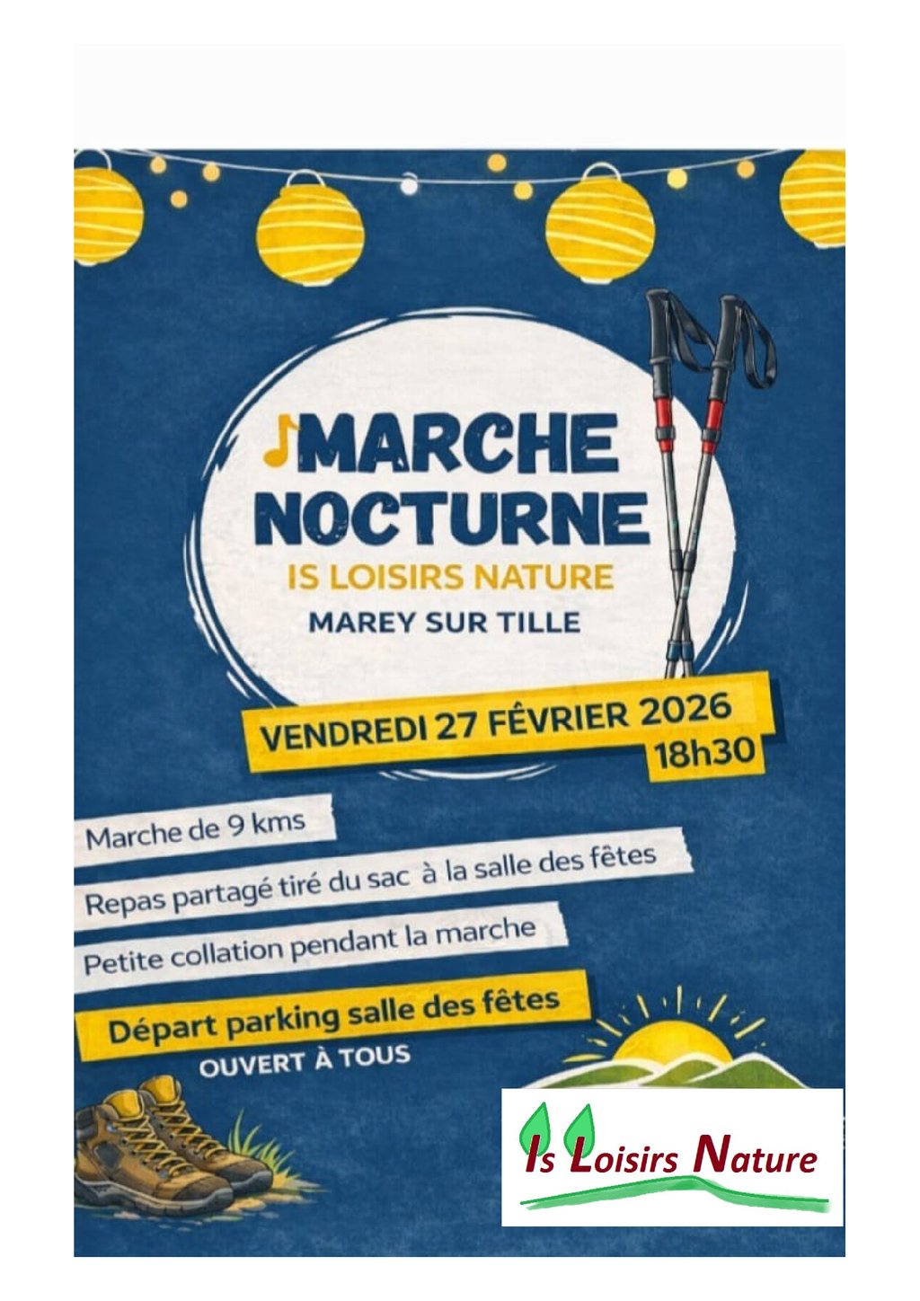 Une marche nocturne est organisée à Marey sur Tille par le club de marche d'Is sur Tille.