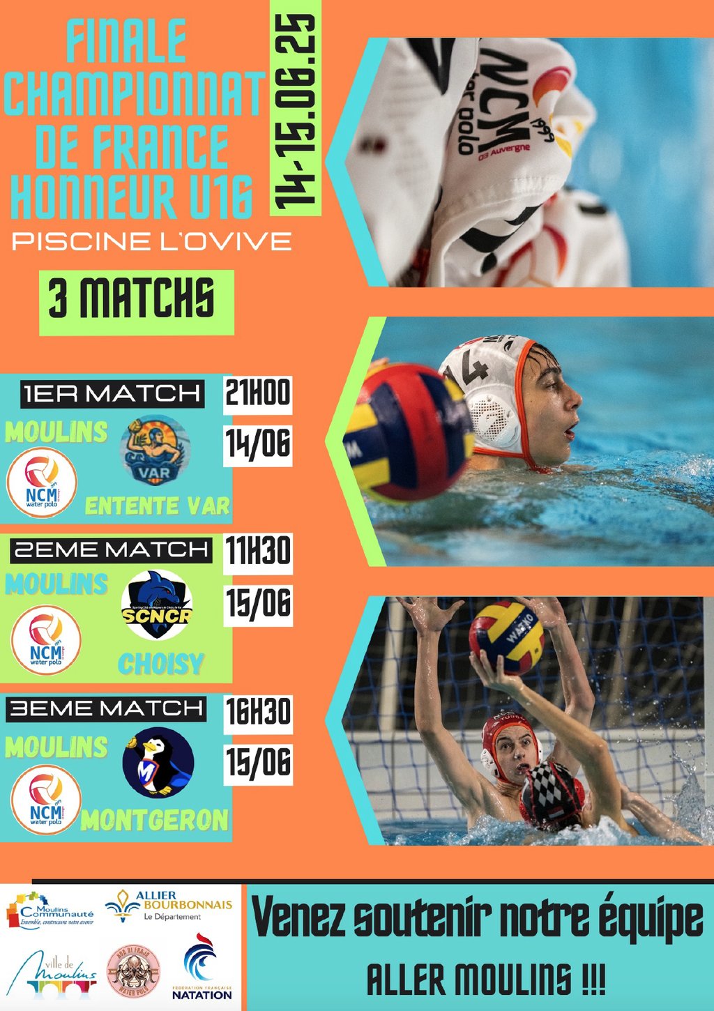 Les 14 et 15 juin, se déroulera la finale du Championnat de France U16 de Waterpolo au centre aqualudique de Moulins.