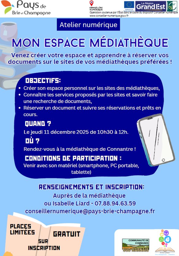 Places limitées - gratuit sur inscription ! Pour vous inscrire ou obtenir plus d'informations, contactez Isabelle Liard au 07.88.94.63.59 ou par email : conseillernumerique@pays-brie-champagne.fr
