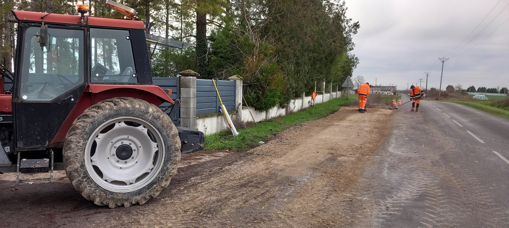 Stabilisation de l’accotement par les Services techniques pour permettre l'arrêt du bus scolaire au lieu-dit La Petite Rivière.