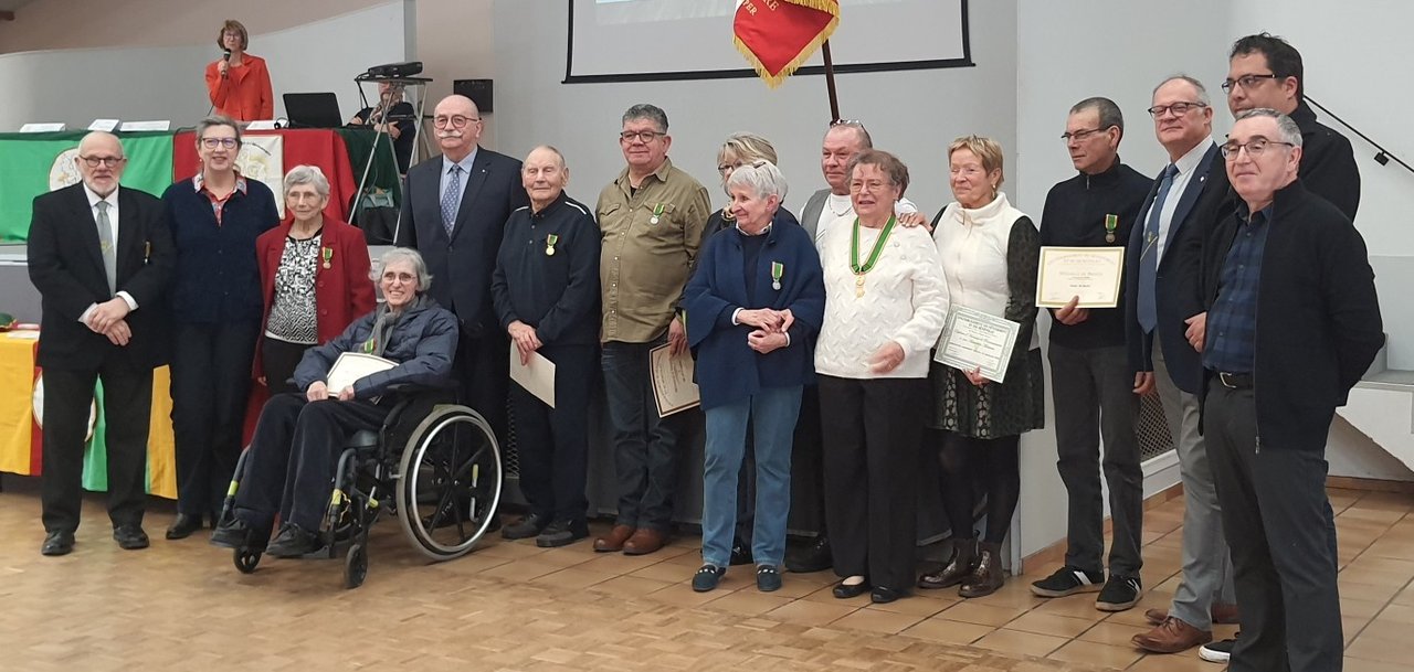 Akli Ait Slimane (7ème de g. à d.), déjà honoré par une médaille de bronze il y a plusieurs années, a reçu ce dimanche 22 février la médaille d'argent de l'association Encouragement du Dévouement de Mehun-Val d'Yèvre.
