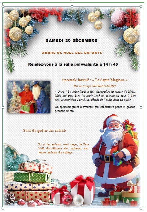Notez bien dans vos agendas, l'arbre de Noël des enfants qui se déroulera :