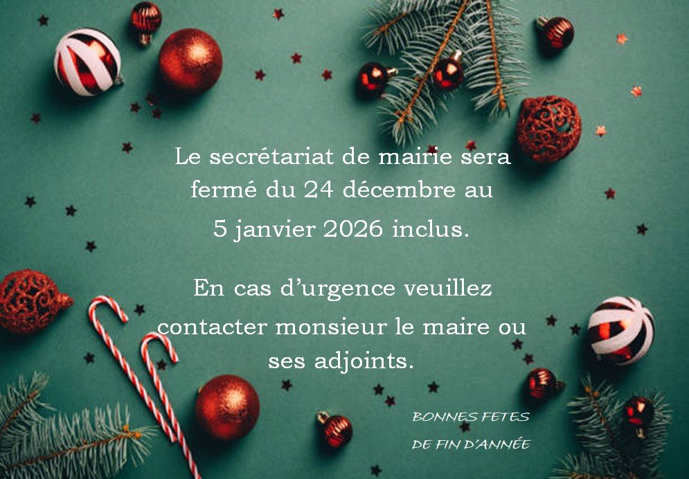 Veuillez prendre note de la fermeture du secrétariat de mairie.