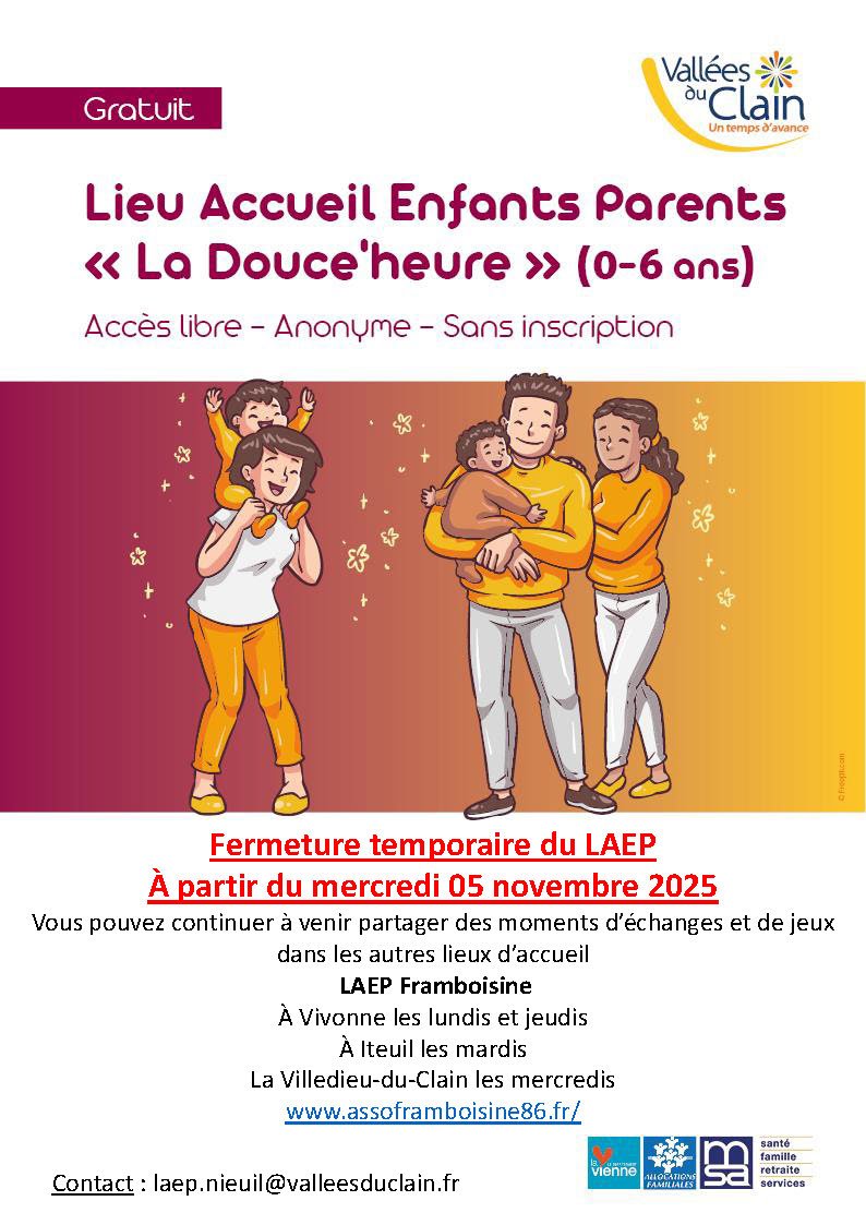 ❌ Fermeture temporaire du Lieu d’Accueil Enfants Parents communautaire à partir du 5 novembre 2025 (inclu).