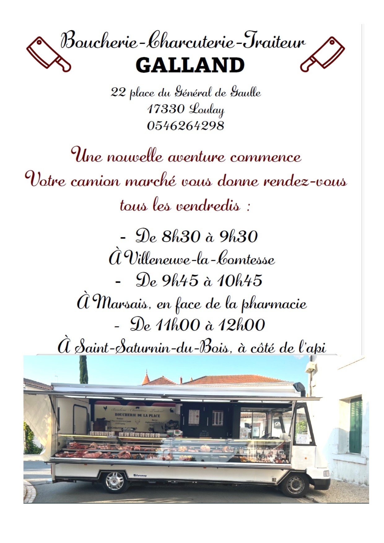 Nous avons le plaisir de vous annoncer le passage d'un boucher les vendredis matin