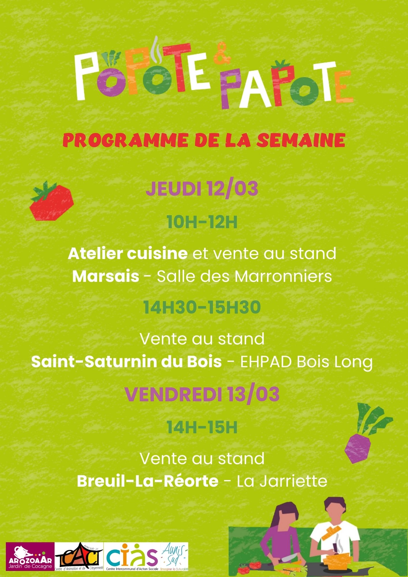 Jeudi : retrouvez Popote & Papote de 10h à 12h salle des Marronniers Marsais Atelier cuisine