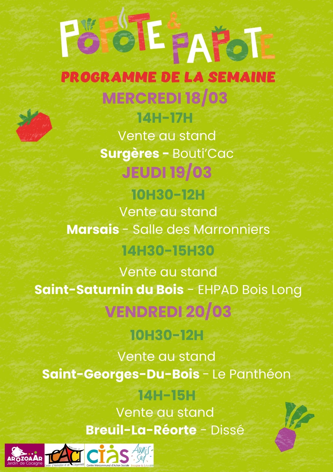 Jeudi : retrouvez Popote & Papote de 10h30 à 12h salle des Marronniers Marsais