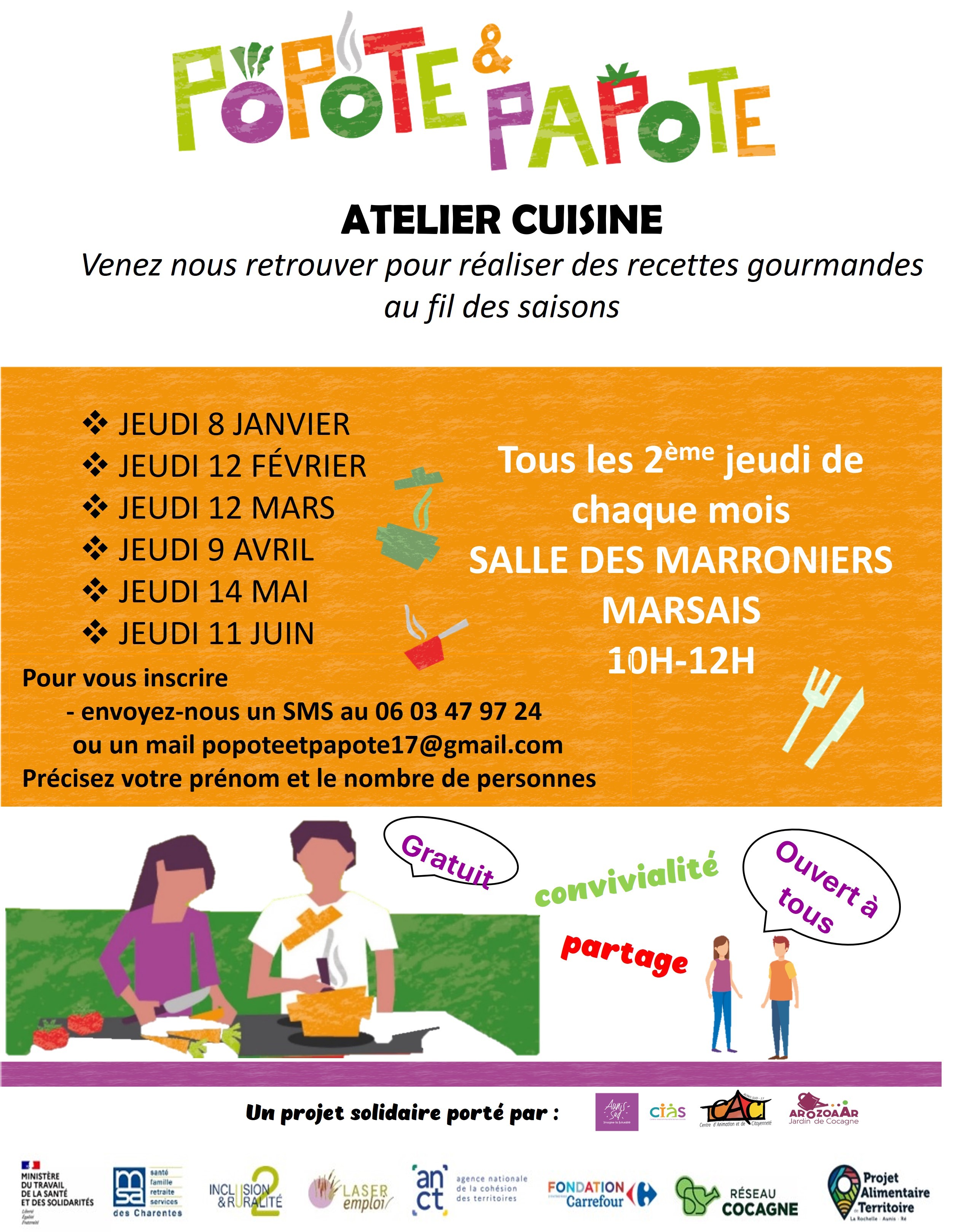 3/ Mais aussi en Atelier cuisine tous les 2ème jeudi de chaque mois à la salle des Marronniers de Marsais de 10h-12h