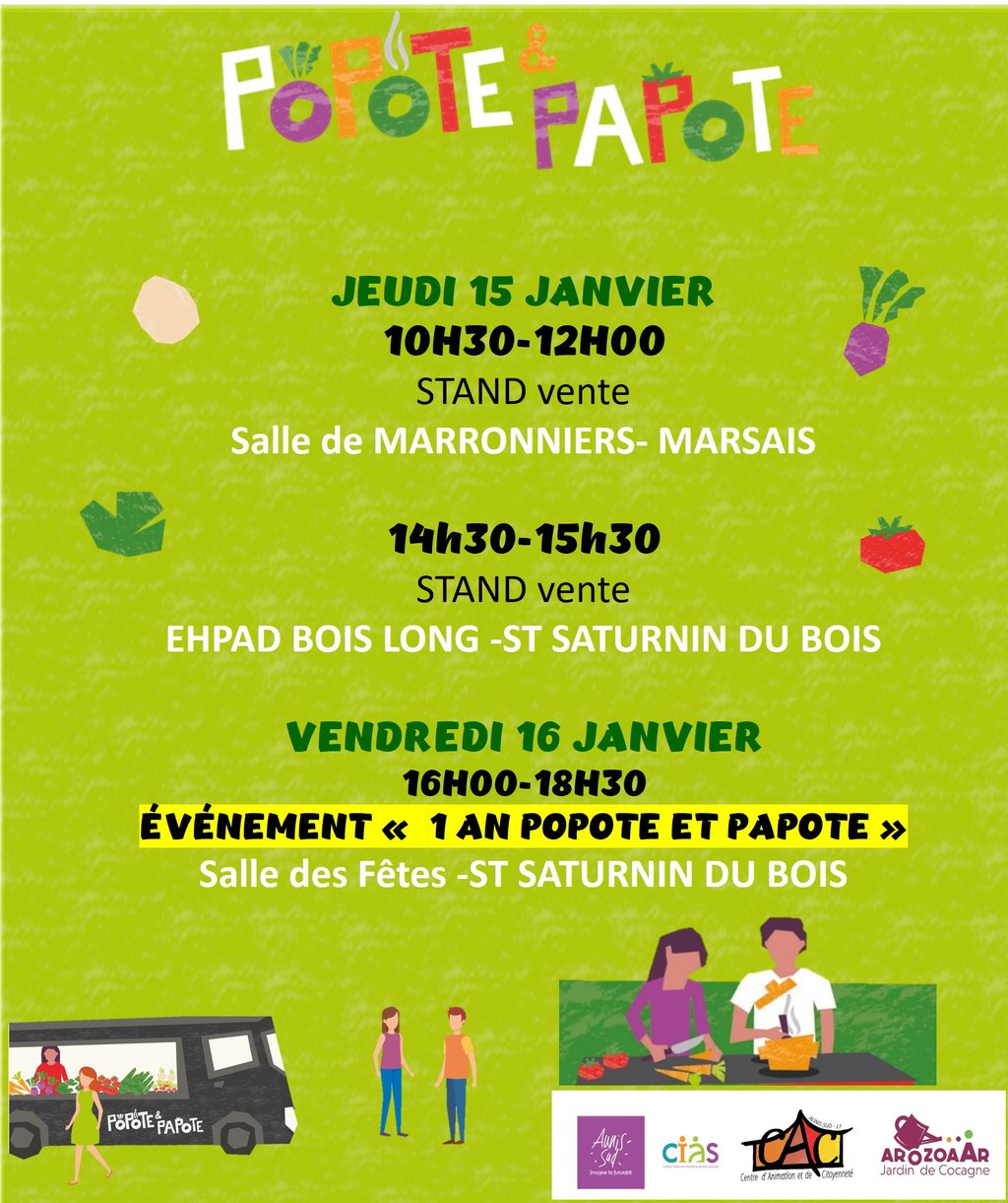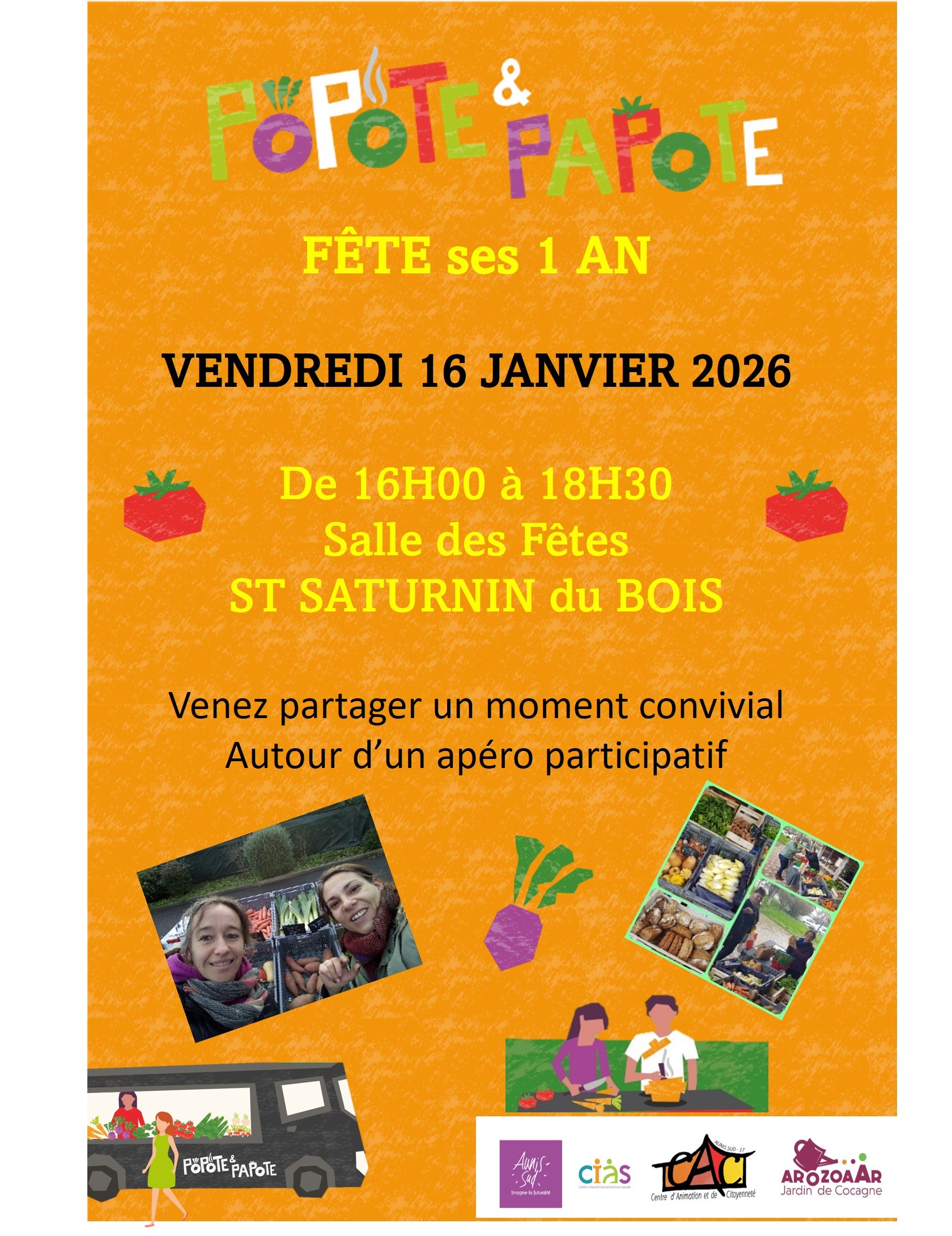 vendredi 16 janvier Popote et Papote fête ses 1 an à la salle des fêtes de Saint Saturnin du Bois de 16h00 à 18h30