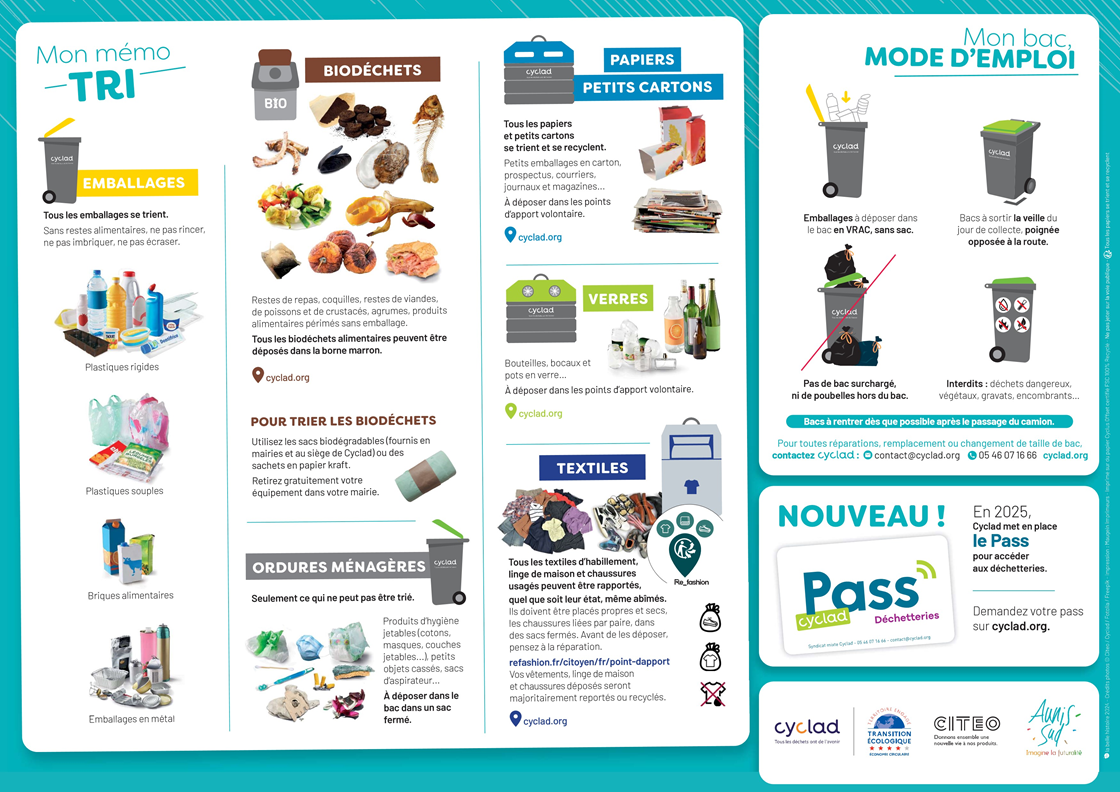Disposez le bac au bon emplacement et la poignée opposée à la route, si lors des contrôles, les agents de cyclad repairent des déchets qui ne devraient pas y être, votre bac ne sera pas relevé.