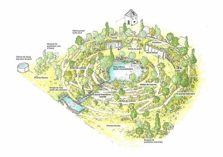 Buttes de cultures inspirées des méthodes de permaculture, serre refuge entourée de pairies fleuries; dans cet écosystème où chaque élément concourt à l'équilibre de l'ensemble, l'artiste Olivier Nattes cherche à créer un espace nouveau, autour de l'idée de paysage habité, où culture et nature s'associent dans le but de bien-être, de recherche et de développement.