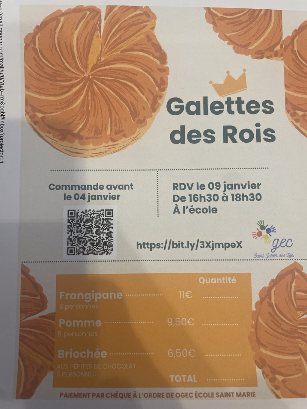 récupération des galettes le vendredi 9 janvier à l école sainte marie