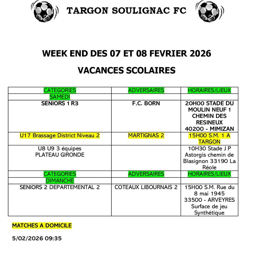 Publié le vendredi 06 février 2026 - Targon Soulignac Football Club (TSFC)