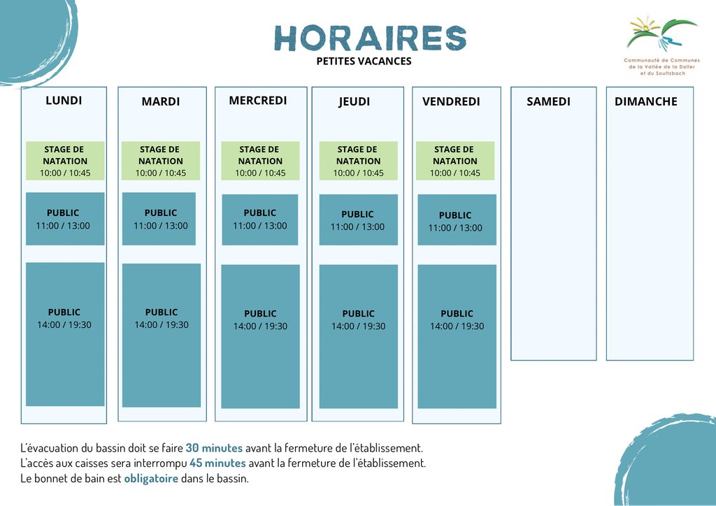 HORAIRES PISCINE - VACANCES SCOLAIRES