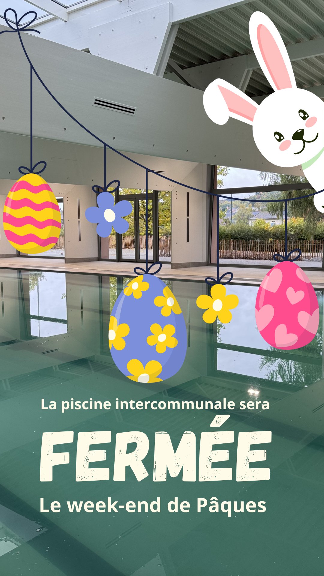 La piscine intercommunale sera fermée le week en de Pâques - du vendredi au lundi inclu.