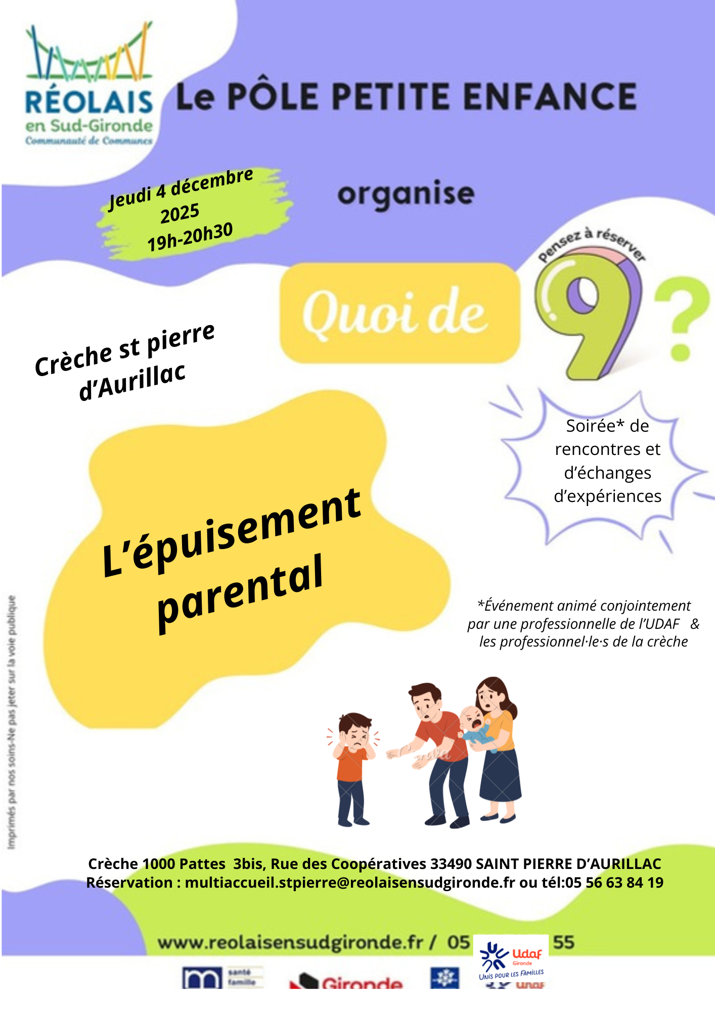 soirée d'échanges et de rencontre avec L'UDAF sur le thème de l'épuisement parental.
