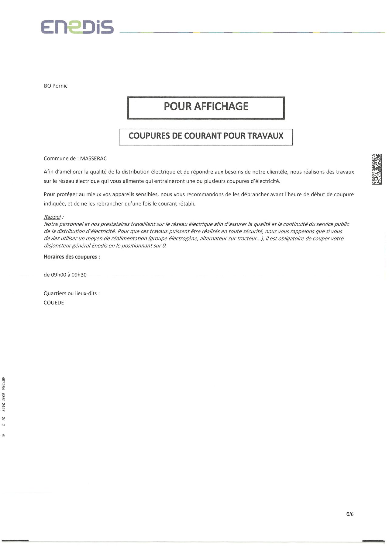 Une coupure de courant est prévue le 19 Mars 2026 de 9h à 9 h 30 sur Couede
