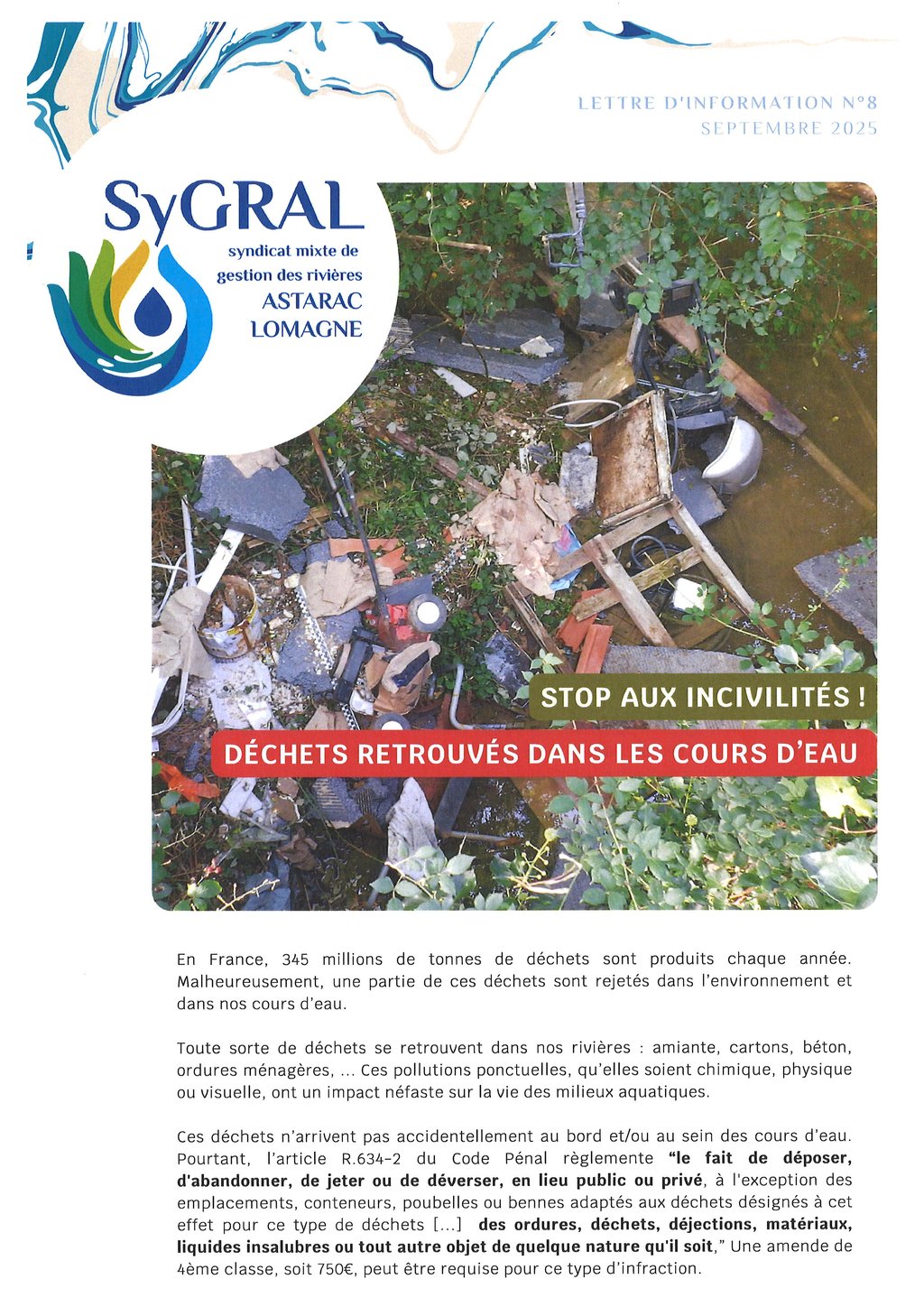 STOP AUX INCIVILITÉS ! DÉCHETS RETROUVÉS DANS LES COURS D'EAU