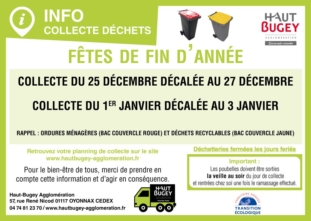 Collecte des déchets du 01 janvier décalée au 03 janvier 2026.
