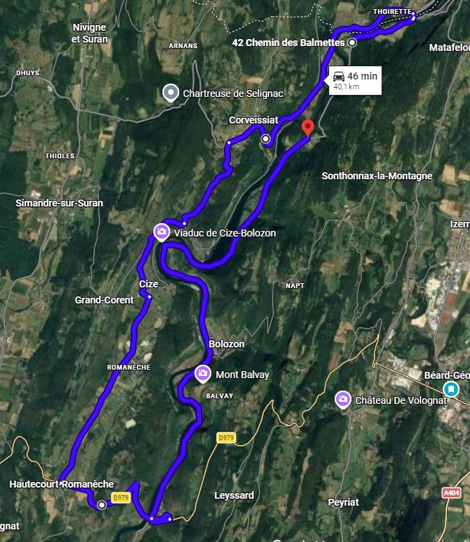 Une déviation par le département du Jura, la RD936 et RD59 a été mise en place par l'Agence Routière du Haut-Bugey (voir photo en PJ)
