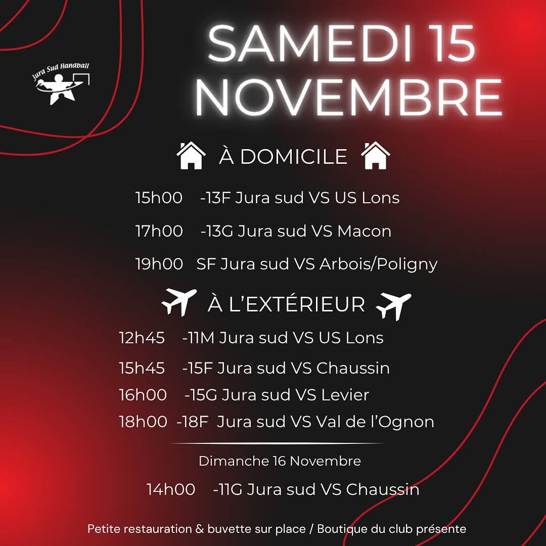 🙌 Venez nombreux encourager nos équipes et vibrer aux couleurs du Jura Sud Handball !