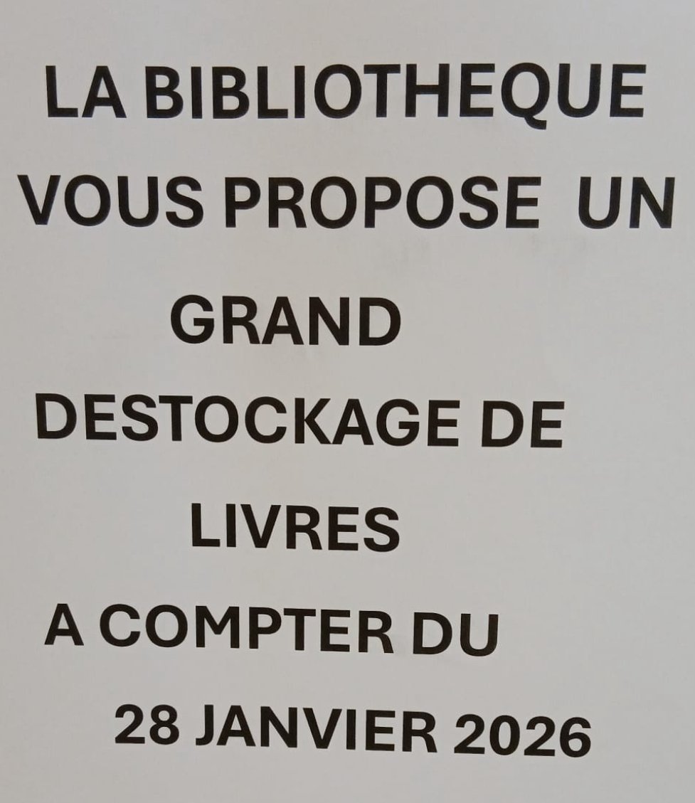 Grand déstockage de livres à la bibliothèque à partir de mercredi 28 janvier, sur les jours et heures d'ouverture.