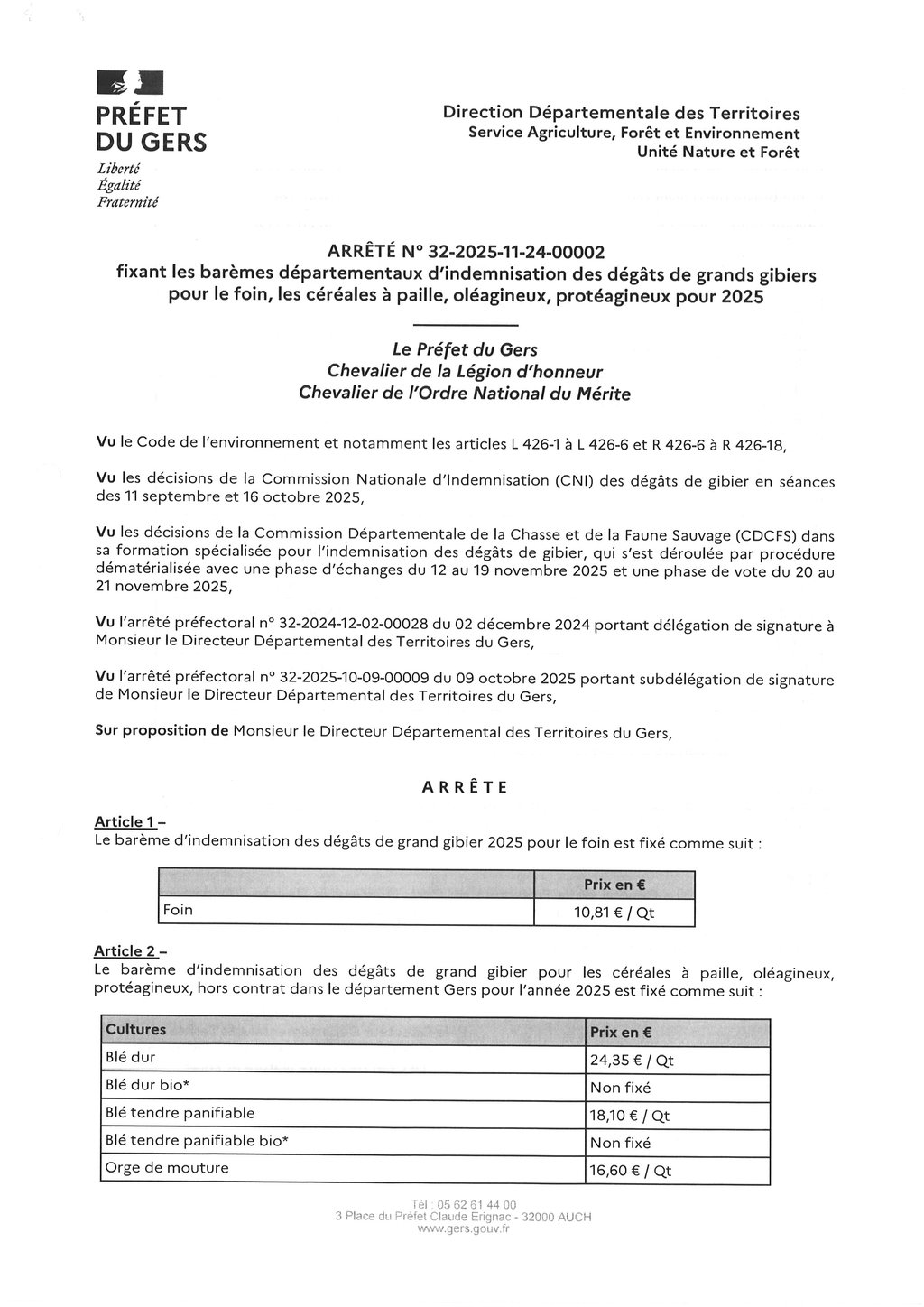 de grands gibiers pour le foin, les céréales à paille, oléagineux, protéagineux pour 2025