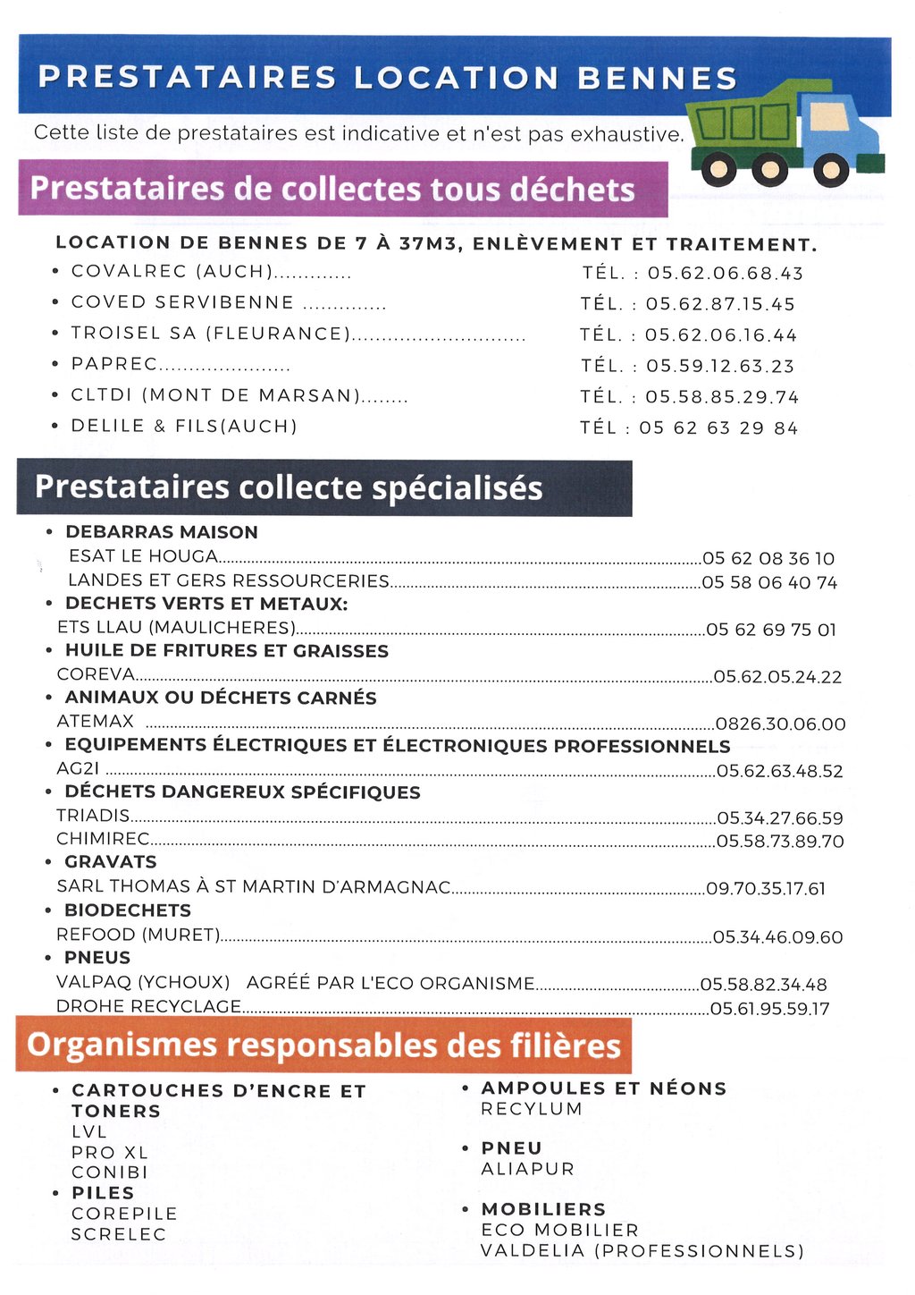 Vous trouverez en pièce jointe les contacts pour chaque flux de déchets concernés.
