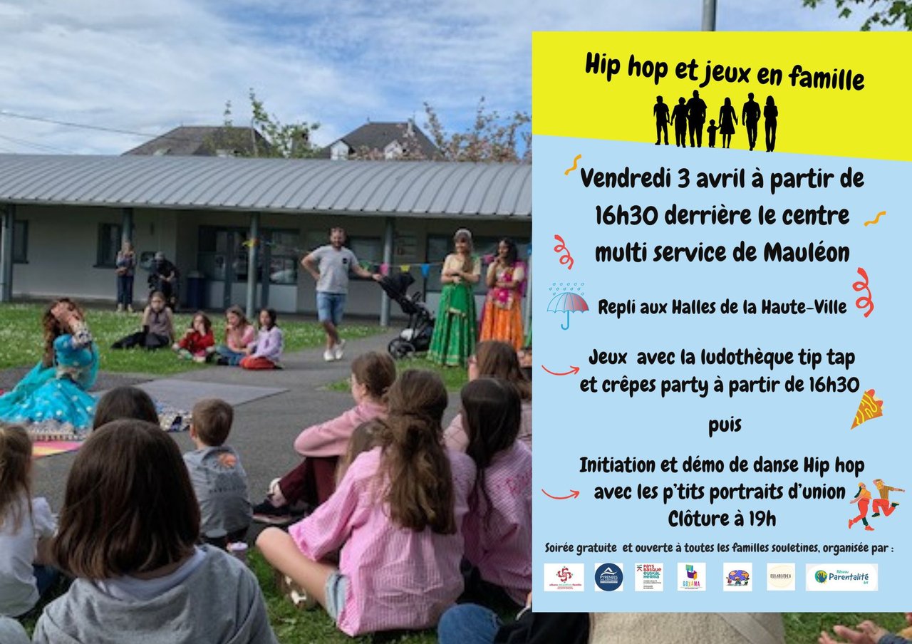 > Programme : goûter crêpes, jeux avec la ludo Tip Tap, parcours avec les animateurs, démonstration/initiation hip hop avec Les p'tits portraits d'union.