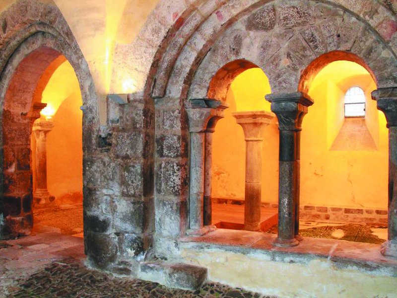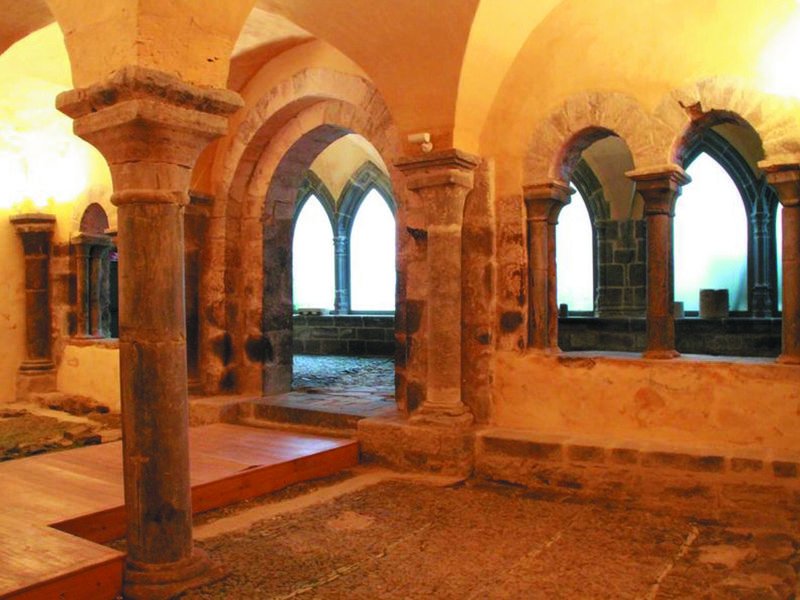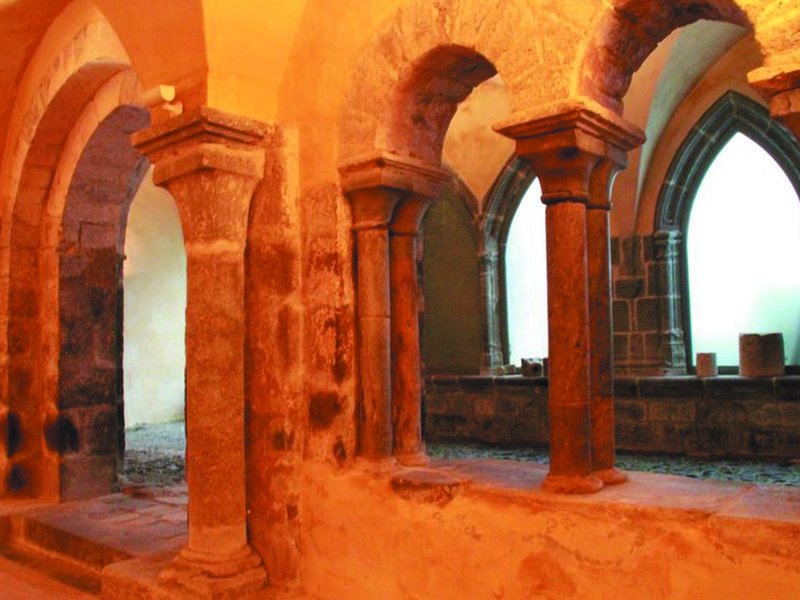 C’est au IXe siècle que l’histoire du monastère prend forme avec la construction d’une église abbatiale, des bâtiments claustraux et du doyenné par la suite. Les doyens de l’ordre de Saint-Benoît se succèdent et embellissent le site au fil du temps mais le monastère traverse, sans être épargné, de grands moments de heurts, au XIIe siècle, et surtout l’année 1574 avec l’invasion des huguenots qui ont mis, durant trois mois, la ville à feu et à sang. Le monastère se relève doucement et l’élan des moines, à l’esprit bâtisseur, reconstruisent les parties détruites et ruinées. L’influence de Saint-Pierre-le-Vif est très grande. Le XVIIe siècle devient une période de grande restauration jusqu’à la démolition de l’église abbatiale vers 1830. Dans les années 1980, le monastère sort de l’anonymat grâce au travail acharné de passionnés. Ainsi, une fouille archéologique montre la présence d’une église dès le IXe siècle, la galerie Est du cloître apparaît, la salle capitulaire du XIe, aux lignes d’une extrême pureté, revoit le jour. Une visite guidée vous conduira, à travers les époques, sur les traces de l’histoire incroyable du monastère Saint-Pierre de Mauriac. La poursuite des fouilles en 2021 a permis de dégager dans la galerie ouest du cloître une colonne proche de celle de la salle capitulaire datant de l’époque romane ainsi que deux blasons de la famille de Balsac du 15e siècle. A l’angle sud-est du jardin du cloître, ce sont des contreforts du 15e siècle qui ont été identifiés.