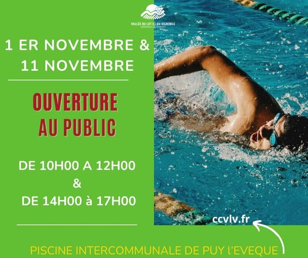 PISCINE INTERCOMMUNALE : OUVERTURE AU PUBLIC 1ER ET 11 NOVEMBRE