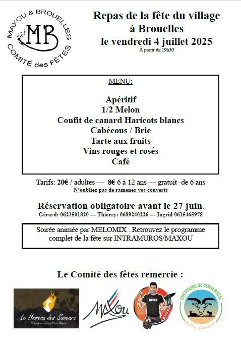 Un apéritif sera offert par le comité des fêtes à partir de 19h30.