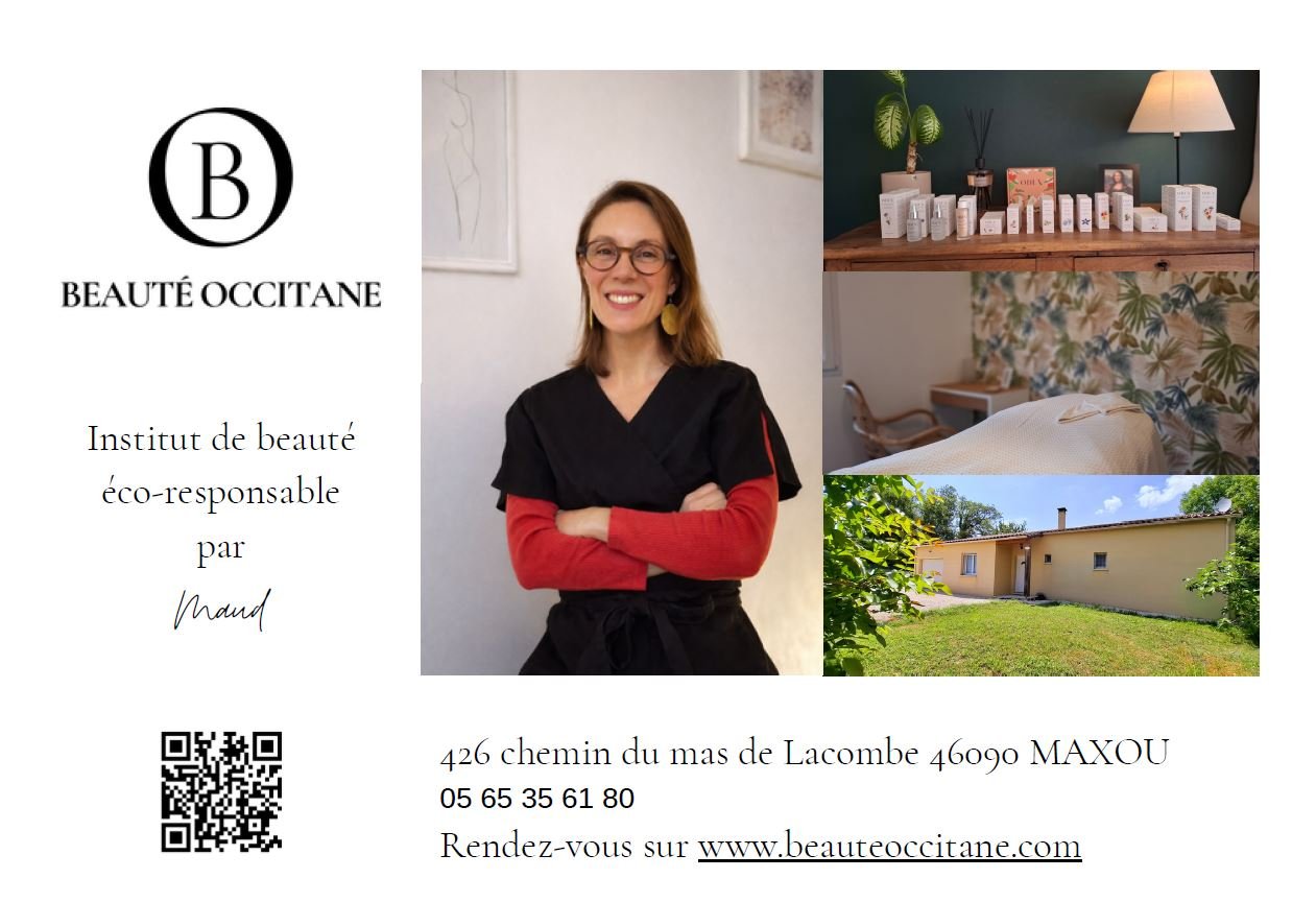 Ouverture prochaine de l'institut de beauté Beauté Occitane avec SPA, situé à Maxou chemin du mas de la Combe, dans la rue de Sudreau et du Camping Quercy Vacances.