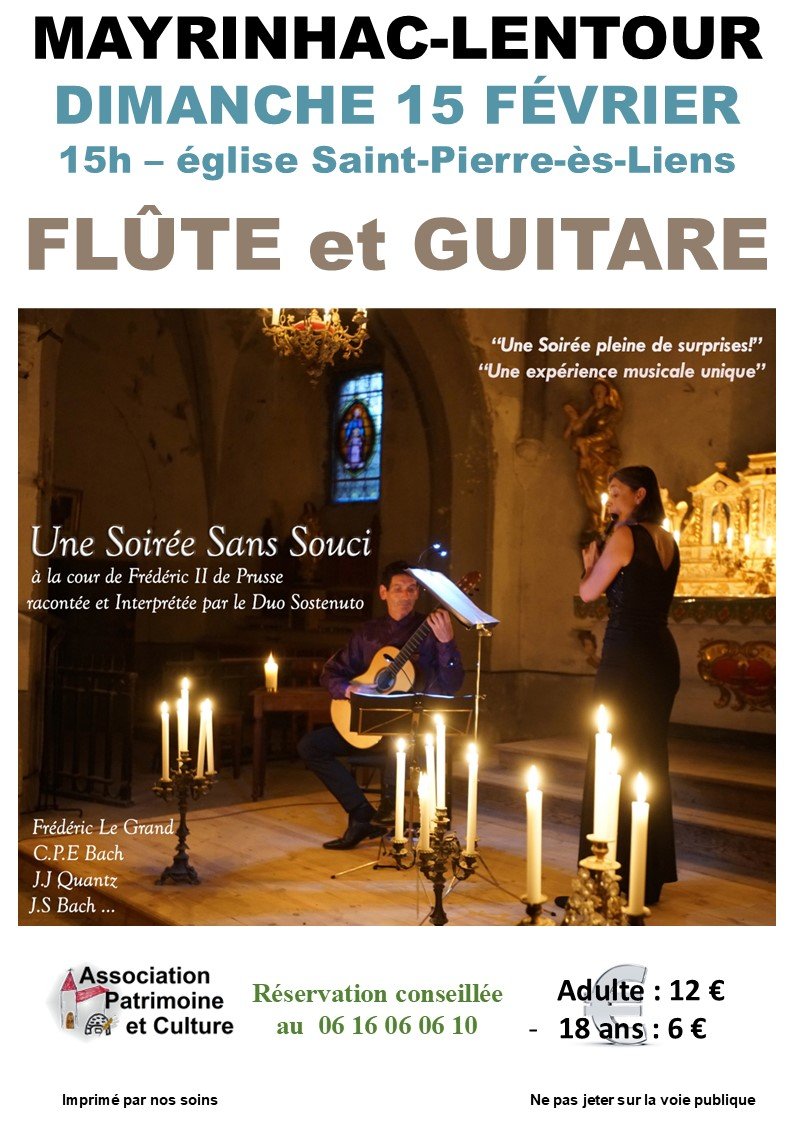 Concert flûte et guitare en l'église Saint-Pierre-ès-liens à 15 heures.