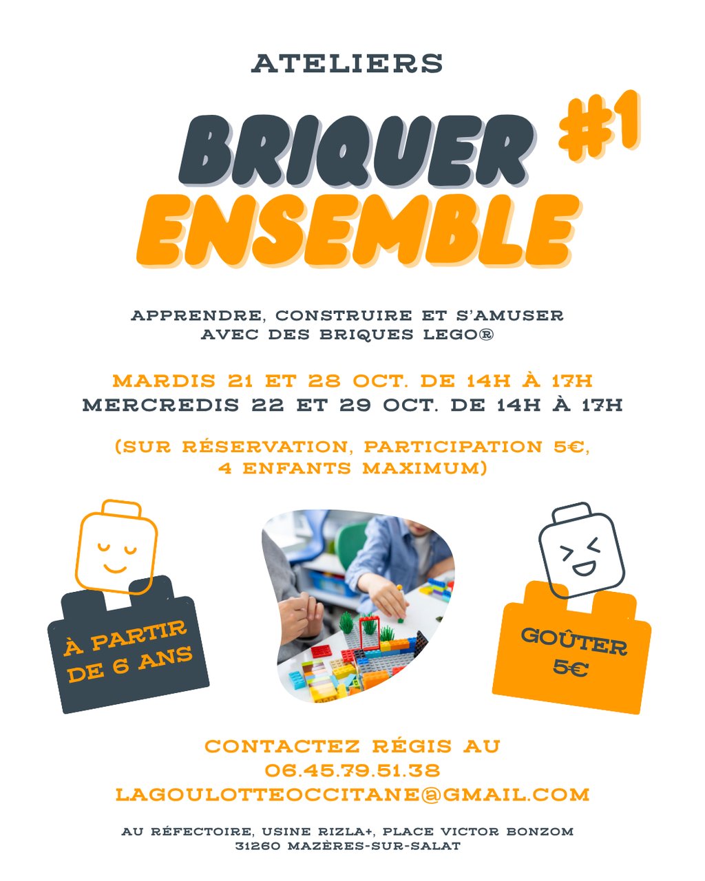 Ce nouveau programme “briquer ensemble” est destiné aux enfants à partir de 6 ans. Grâce aux milliers de pièces à disposition, vos enfants pourront construire avec moi des ensembles avec instructions ou des modèles originaux sortis de notre imagination.