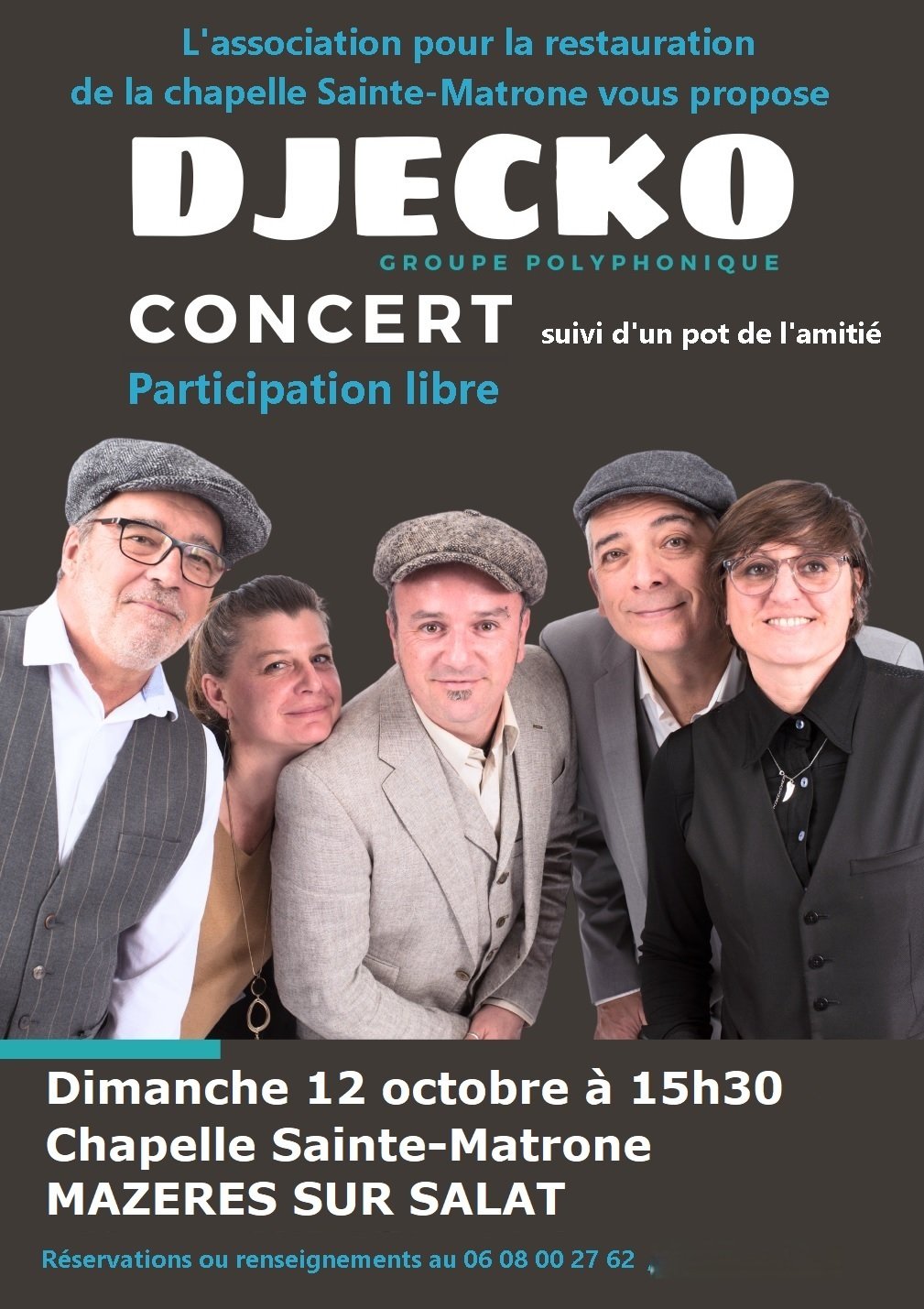 L'A.R.C.S.M. vous donne RDV le dimanche 12 octobre à 15 h 30 à la chapelle Sainte-Matrone pour un concert polyphonique du groupe DJECKO