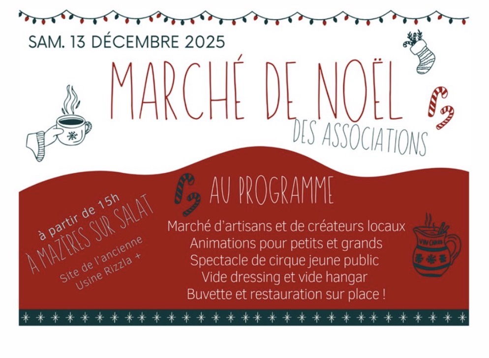 La Mairie de Mazères-sur-Salat s’associe aux associations locales pour organiser le Marché de Noël le 13 décembre 2025 ! 🎄