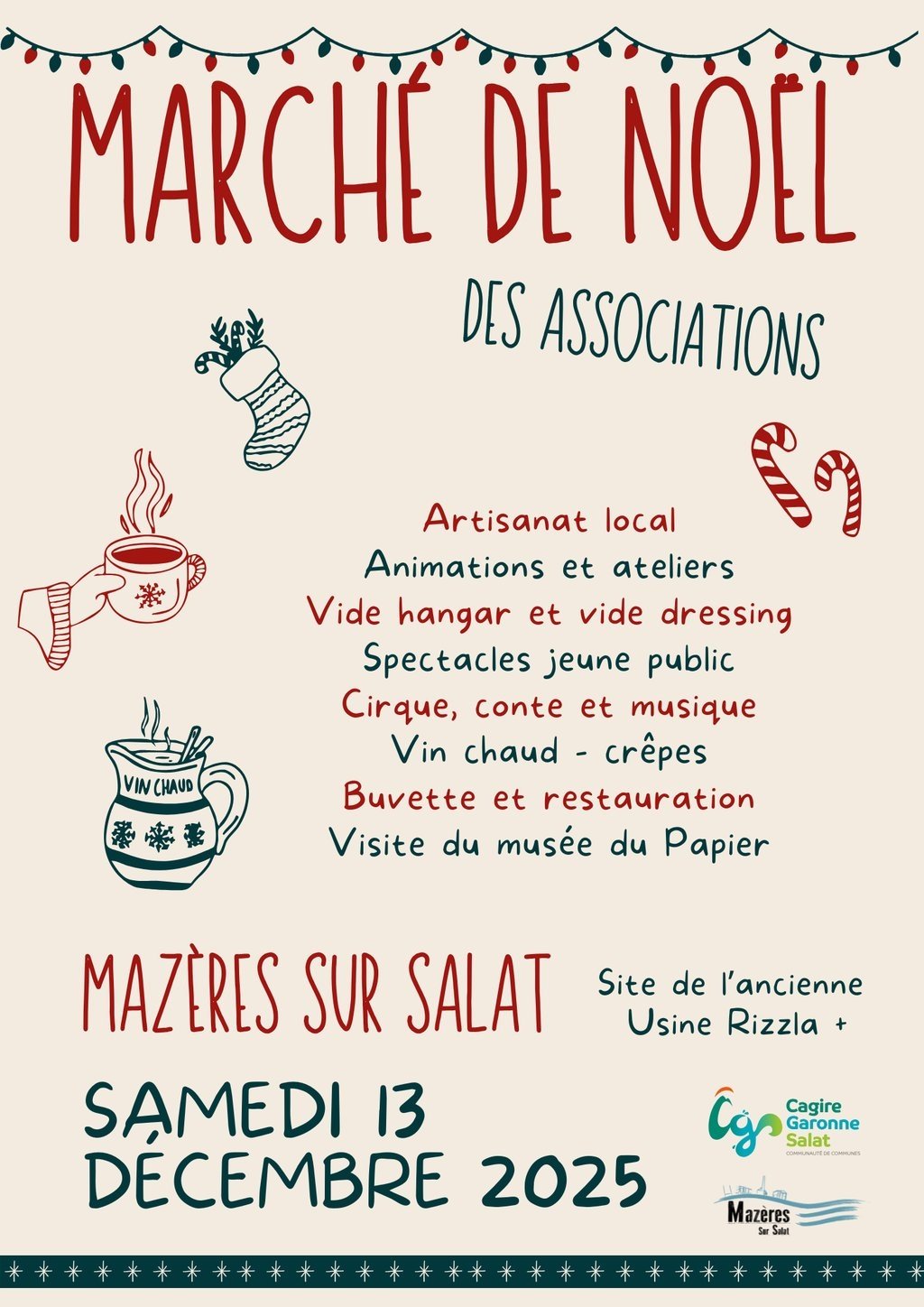 La Mairie de Mazères-sur-Salat s'associe aux associations locales pour organiser le Marché de Noël le 13 décembre 2025 !